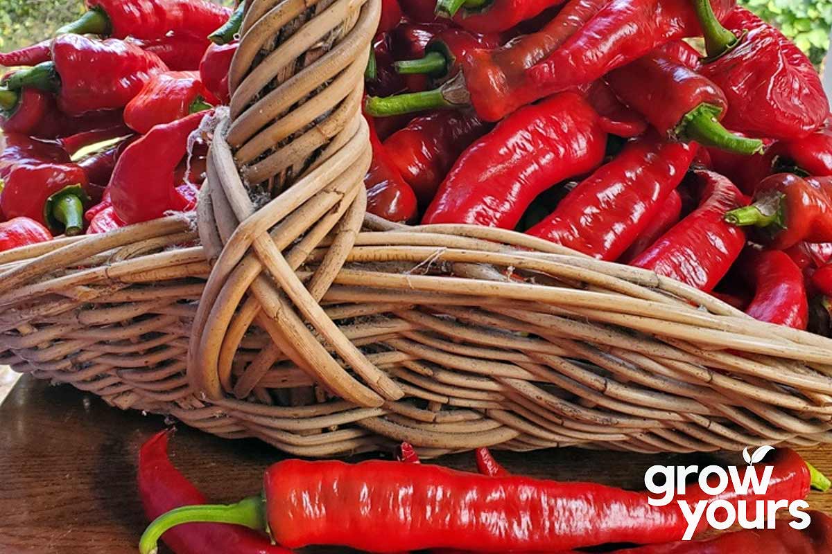 'Jimmy Nardello' is an exquisite heirloom Capsicum that produces long, bright red, sweet peppers that taste amazing.