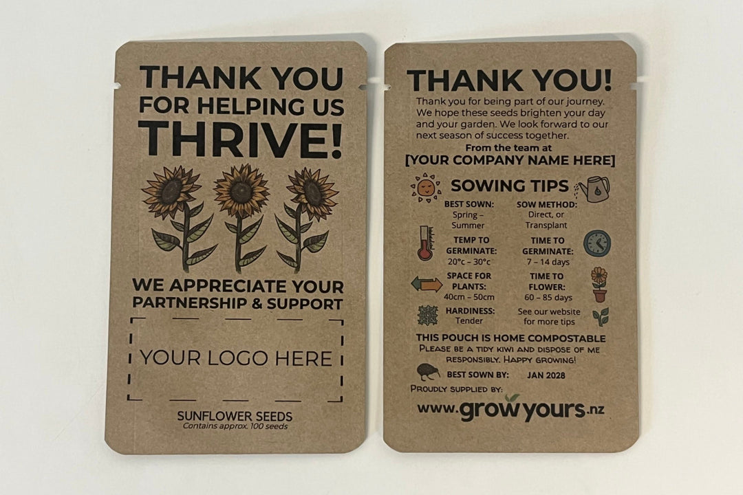 Our seeds are hand packed in NZ made home-compostable high-barrier packets. We include key sowing tips on the back of each packet to help you make the most of what you sow. Plus every order is backed by our Sow & Grow Guarantee.